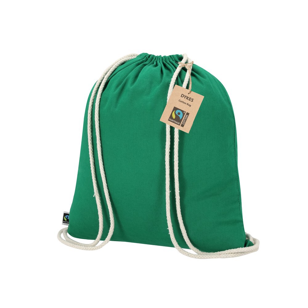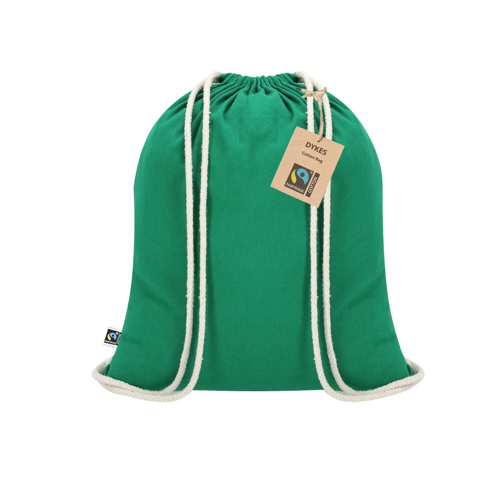 Worek ze sznurkiem umożliwiającym noszenie na plecach, pomieści drobne zakupy lub strój sportowy na siłownię, produkt wykonany z bawełny o gramaturze 140 g/m², zgodny z certyfikatem FAIRTRADE