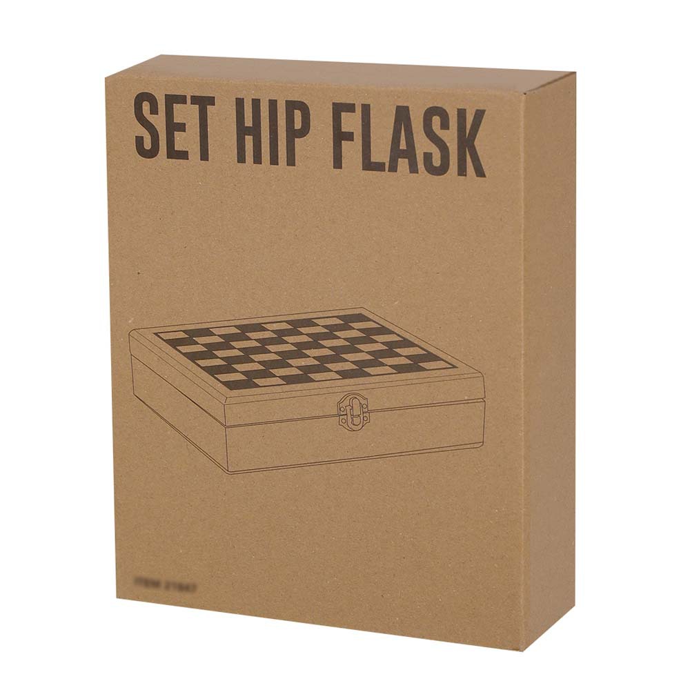 Zestaw upominkowy, piersiówka 175 ml, kieliszek 30 ml, szachy, karty oraz kości do gry / Beżowy