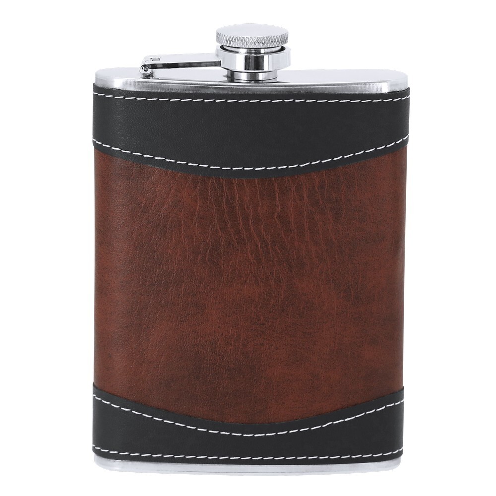 Zestaw upominkowy, w zestawie piersiówka 175 ml, kieliszek 30 ml, nalewak, szachy, karty oraz kości do gry, produkt wykonany z drewna