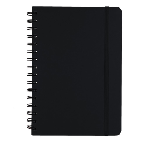 Notatnik w formacie ok. A5 z twardą okładką, posiada 80 kartek w linie i spiralne bindowanie, produkt wykonany z PU z recyklingu
