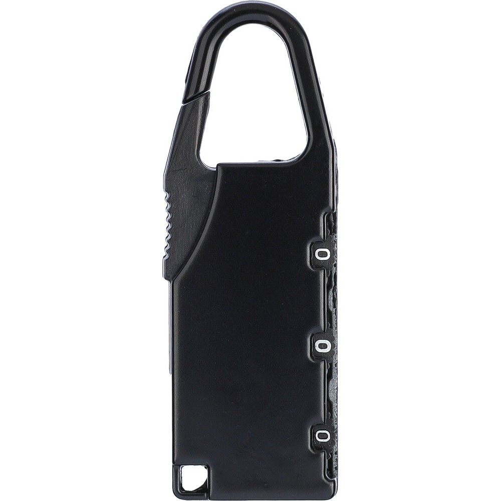 Kłódka podróżna z karabińczykiem umożliwiającym przypinanie, sprawdzi się podczas podróży jako zabezpieczenie walizki, produkt wykonany z metalu