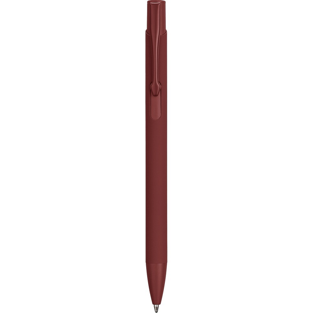 Długopis aluminiowy z recyklingu z gumowaną powłoką na korpusie, ikona aluminium z recyklingu wygrawerowana na produkcie, wkład w niebieskim kolorze, produkt wykonany z aluminium i ABS.