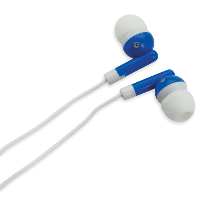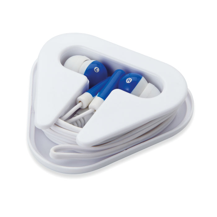 Słuchawki z PVC w trójkątnym etui. Kabel długości 120cm.