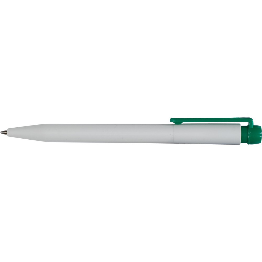 Długopis Stilolinea, biały trzon, kolorowy, szeroki klip, wkład w niebieskim kolorze, zawiera tusz German Dokumental Ink, produkt wykonany z ABS, plastiku, niklu i metalu