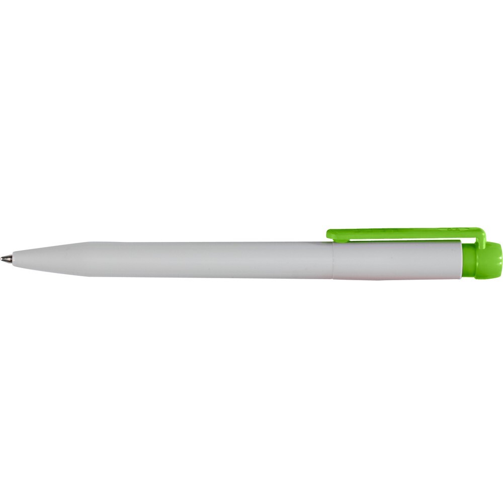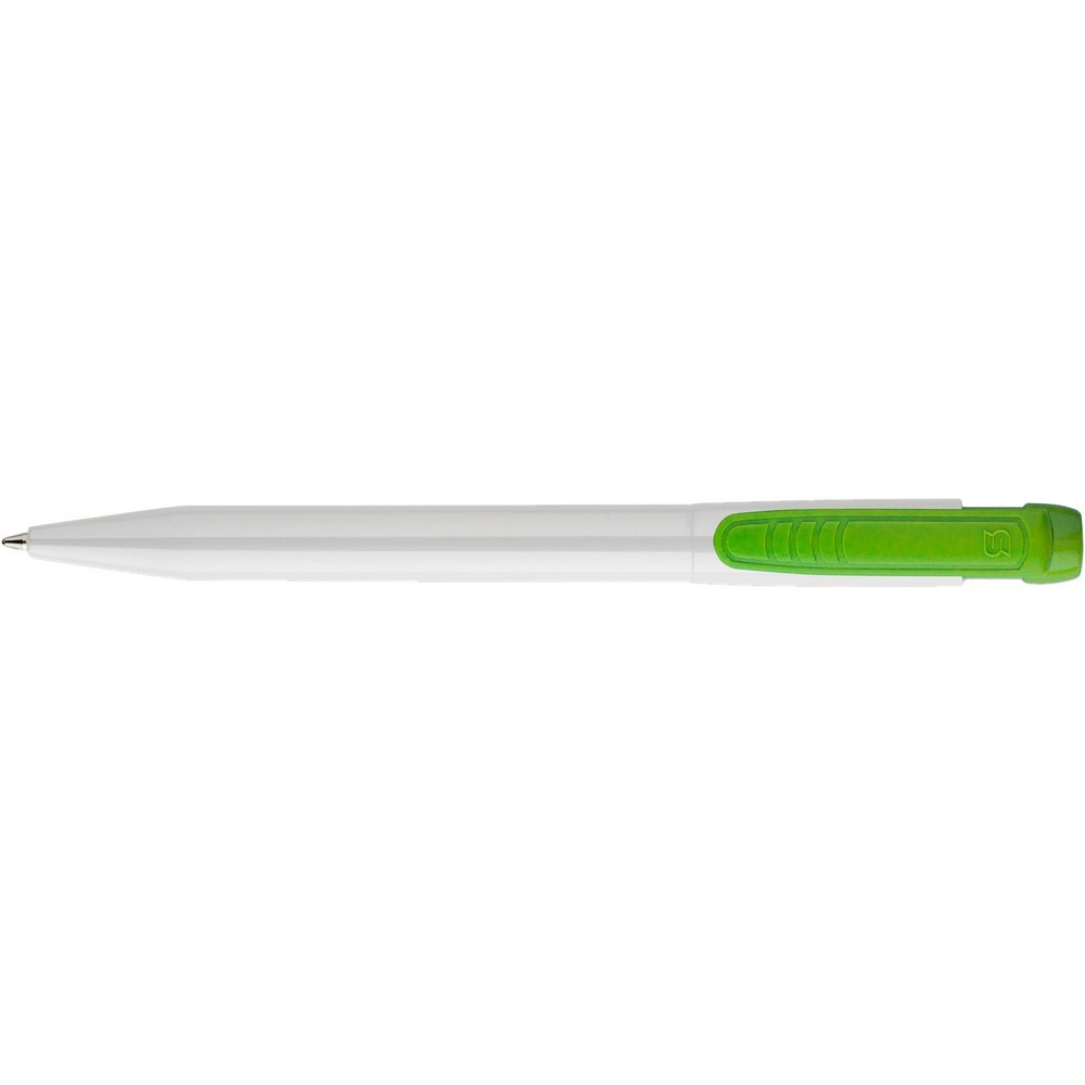 Długopis Stilolinea, biały trzon, kolorowy, szeroki klip, wkład w niebieskim kolorze, zawiera tusz German Dokumental Ink, produkt wykonany z ABS, plastiku, niklu i metalu