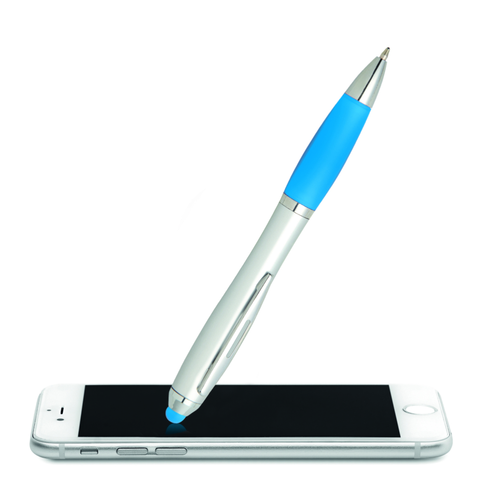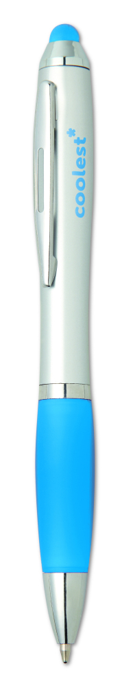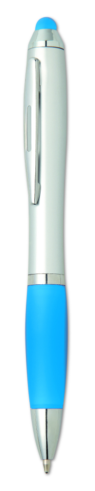 Plastikowy, przekręcany długopis z gumowanym uchwytem i kolorystycznie dobraną miękką końcówką. Niebieski wkład.