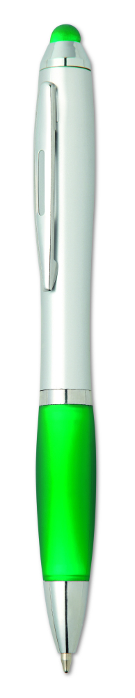 Plastikowy, przekręcany długopis z gumowanym uchwytem i kolorystycznie dobraną miękką końcówką. Niebieski wkład.