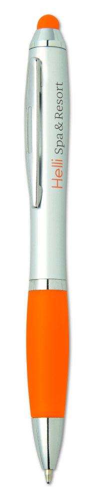 Plastikowy, przekręcany długopis z gumowanym uchwytem i kolorystycznie dobraną miękką końcówką. Niebieski wkład.