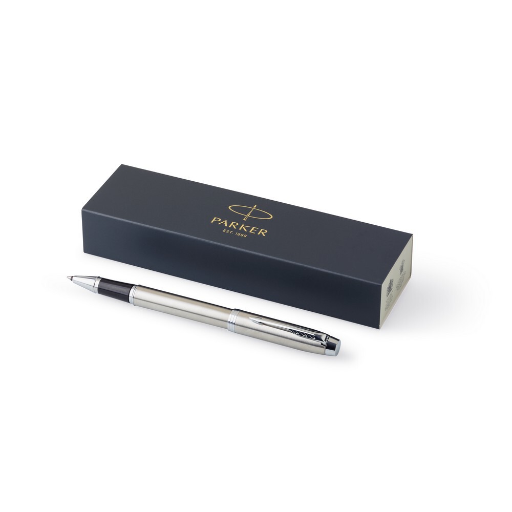 Pióro kulkowe Parker IM, wkład w czarnym kolorze, zapakowany w pudełko upominkowe, produkt wykonany z chromu