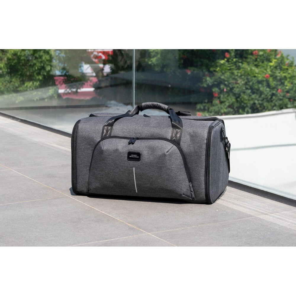 Torba sportowa, podróżna BrandCharger Voyager, wykonana z powtórnie przetworzonych butelek PET, sprawdzi się w podróży lub na siłowni, wyposażony w zintegrowany pokrowiec na ubranie, co sprawia, że stroje będą świeże i gotowe na każdą okazję, składana konstrukcja, przestronne wnętrze o pojemności 35 litrów, pasek umożliwiający przypinanie do wózka, produkt wykonany z RPET i poliestru