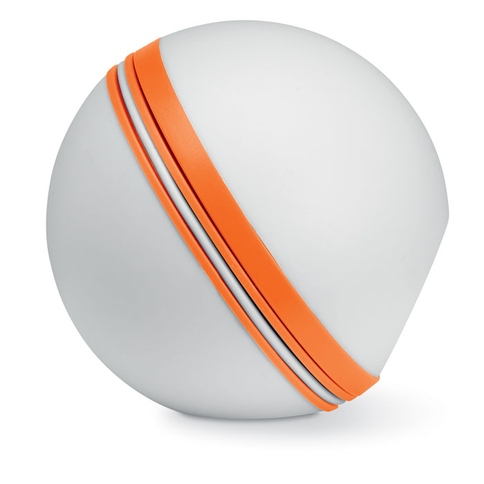 Głośnik stereo w kształcie kuli w matowym wykończeniu z kablem do smartfonów lub tabletów.