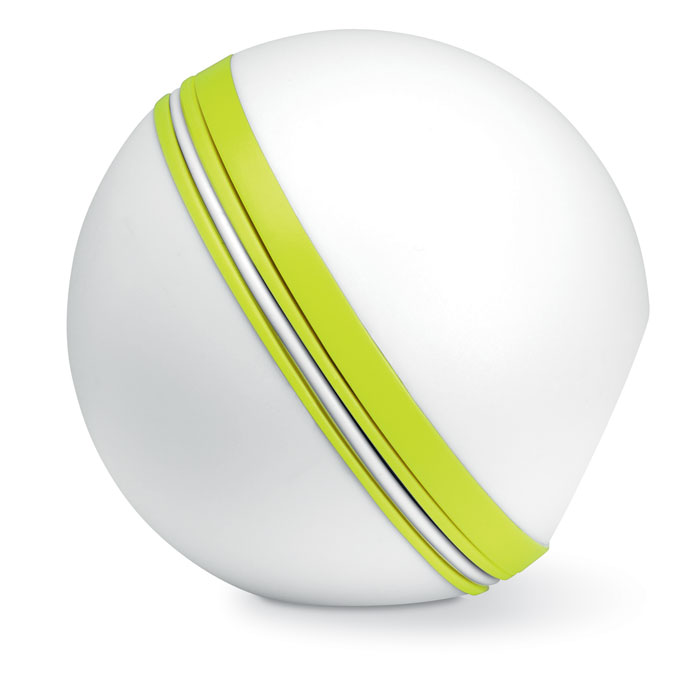 Głośnik stereo w kształcie kuli w matowym wykończeniu z kablem do smartfonów lub tabletów.