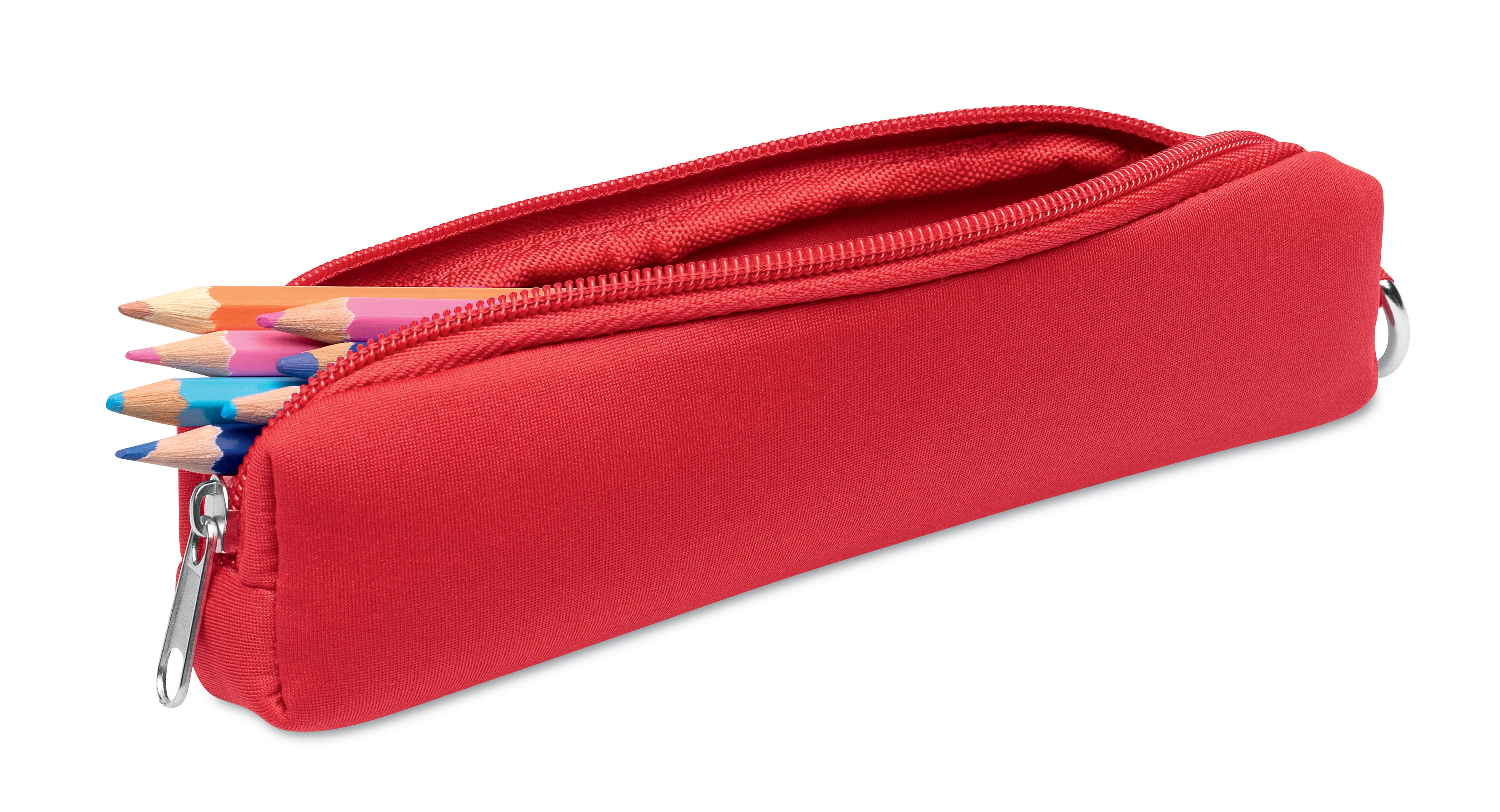 Piórnik wykonany z piankowej tkaniny z karabinkiem.