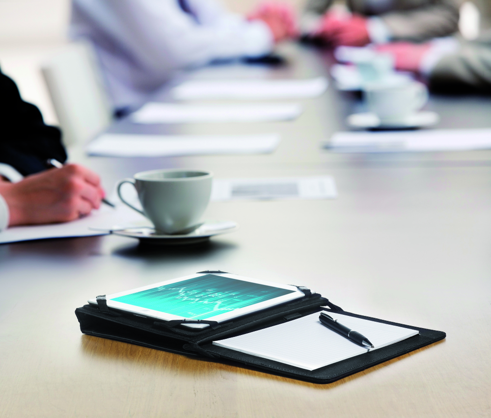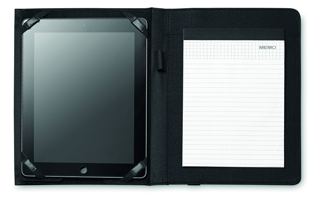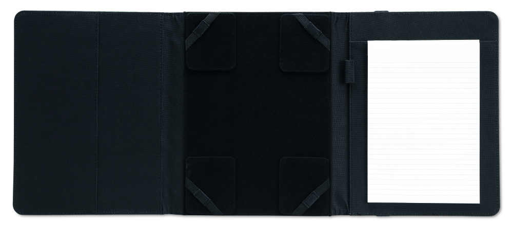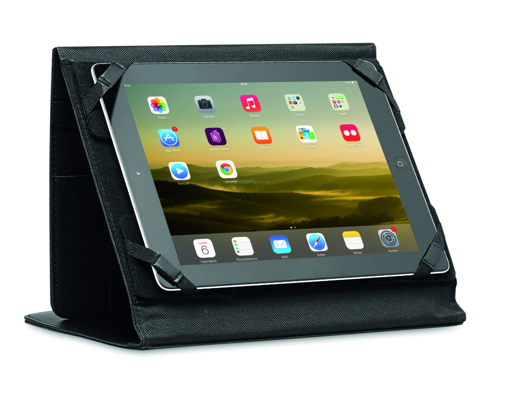 Etui na tablet wykonane z połączeniu poliestru 600D oraz PU. Format A5.