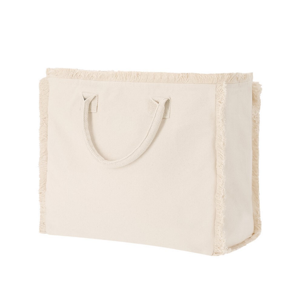 Torba na zakupy, posiada długie uchwyty umożliwiające noszenie na ramieniu, produkt wykonany z bawełny 360 g/m2
