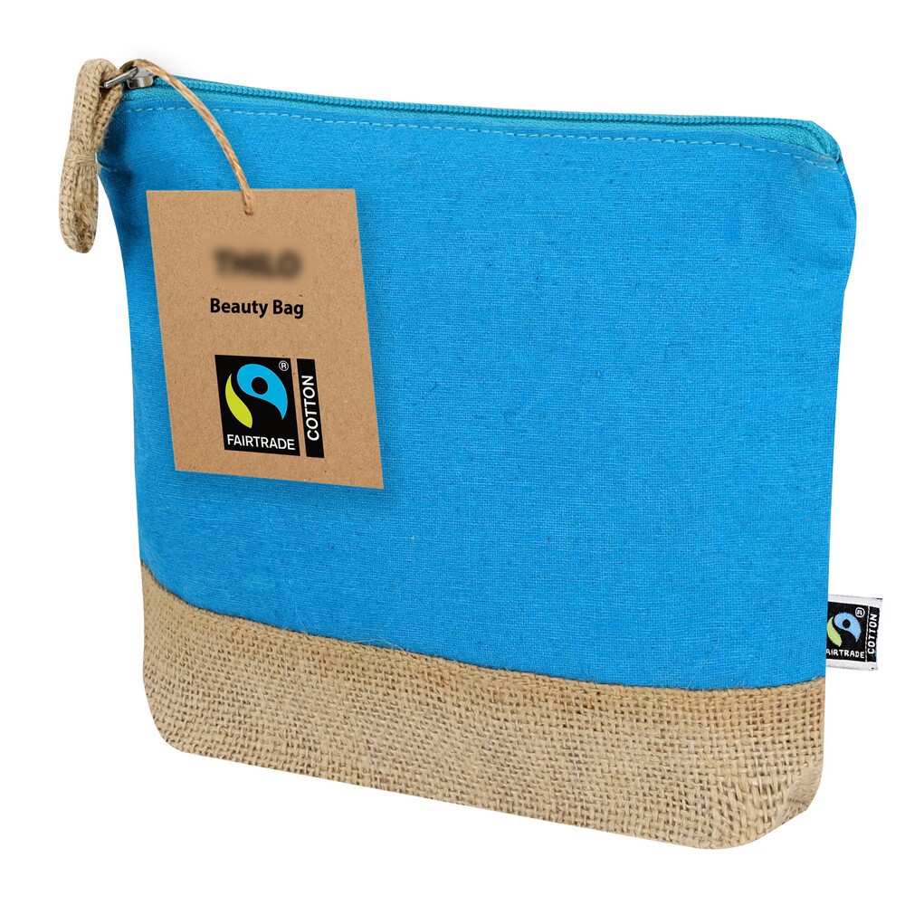 Kosmetyczka, przegroda główna zamykana na zamek, produkt wykonany z juty laminowanej i bawełny 170 g/m2