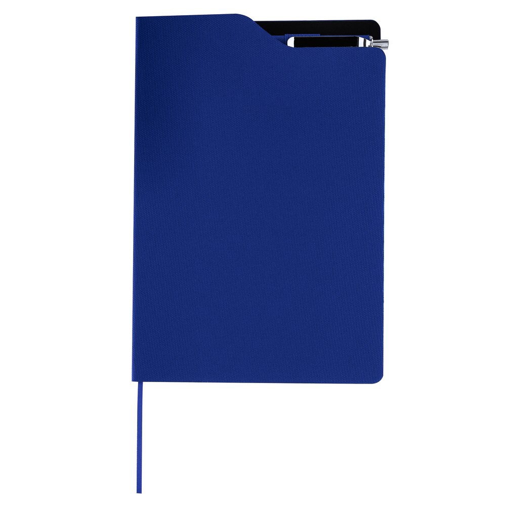 Notatnik A5, z twardą okładką, 80 kartek w linie, długopis z wkładem w niebieskim kolorze, produkt wykonany z poliestru 300D