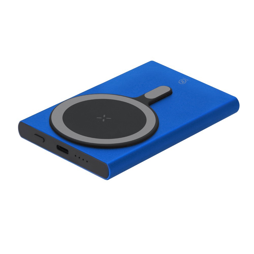 Magnetyczny bezprzewodowy power bank 5000 mAh z aluminium z recyklingu, ładowarka bezprzewodowa 15W / Niebieski