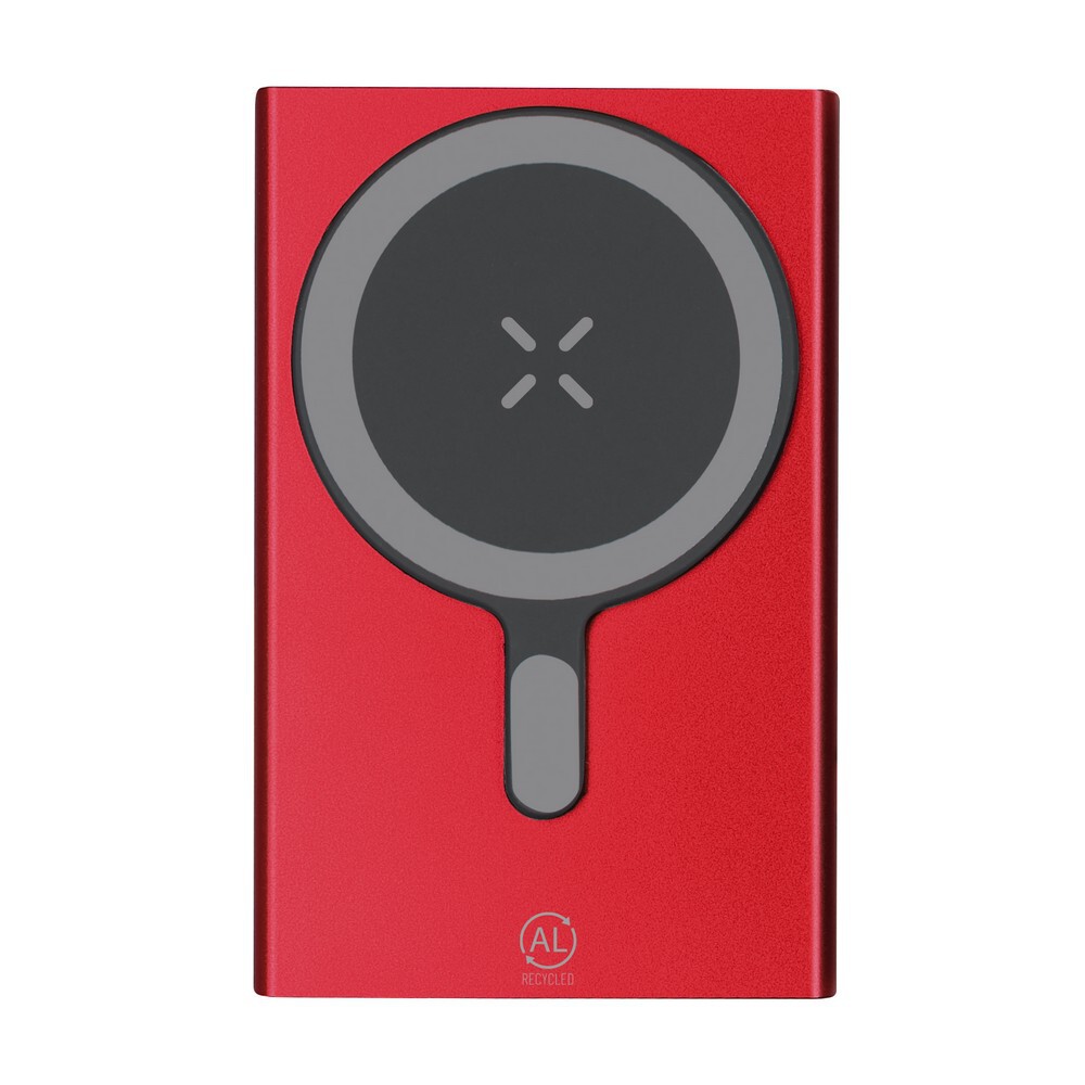 Magnetyczny bezprzewodowy power bank 5000 mAh z aluminium z recyklingu, ładowarka bezprzewodowa 15W / Czerwony