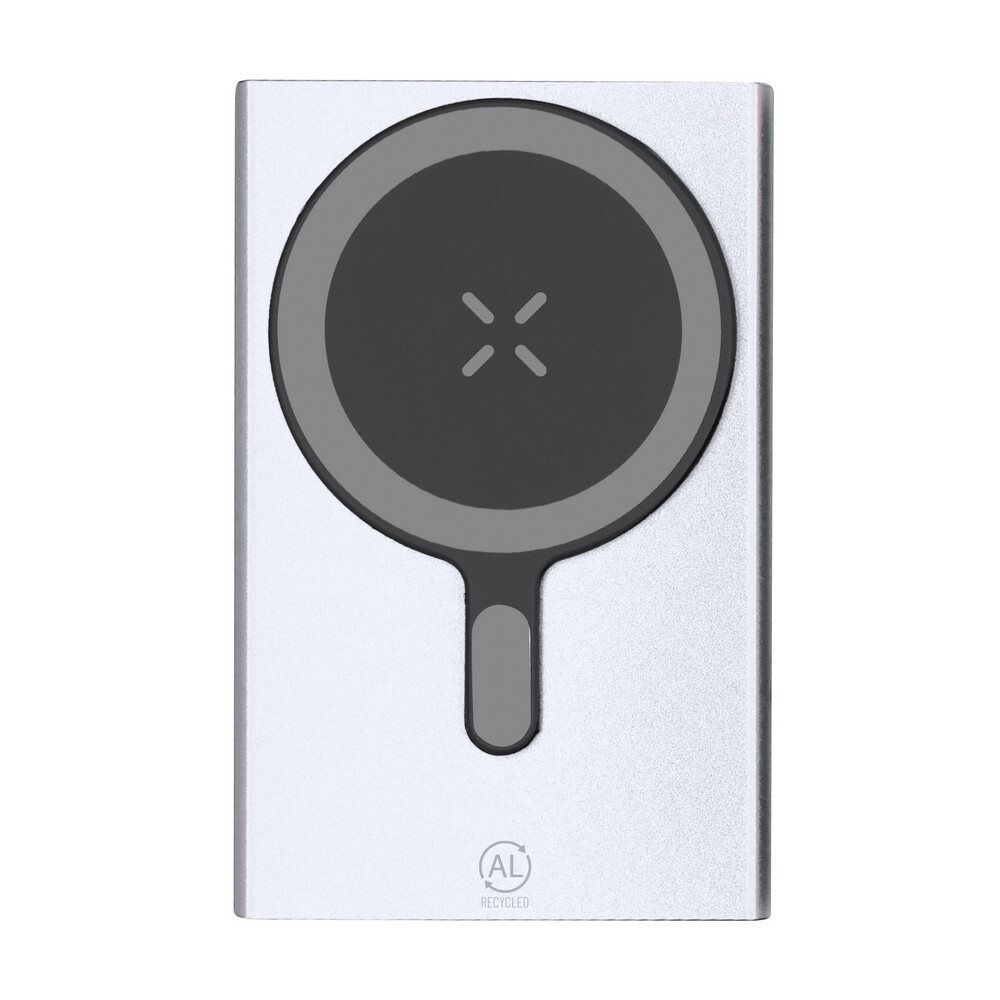 Magnetyczny bezprzewodowy power bank 5000 mAh z aluminium z recyklingu, ładowarka bezprzewodowa 15W / Srebrny