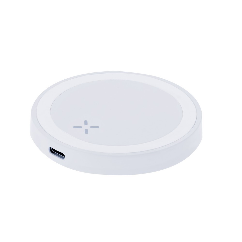 Bezprzewodowa ładowarka 15W, działa z urządzeniami posiadającymi możliwość ładowania indukcyjnego, wejście/wyjście USB-C 5-9V/1-1.67A, kabel USB-C w komplecie, produkt wykonany z RABS, zgodny z certyfikatem RCS (Recycled Claim Standard)