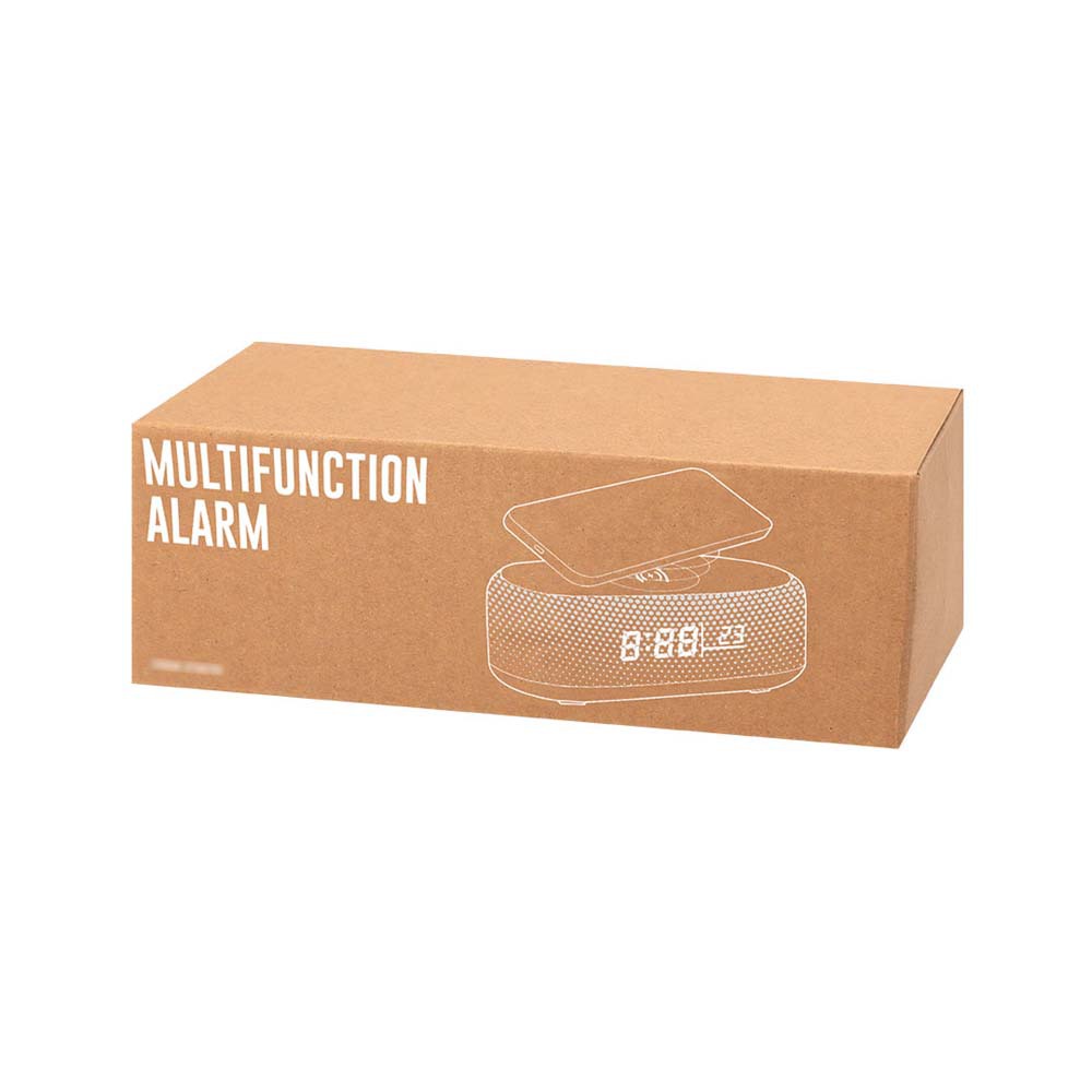 Ładowarka bezprzewodowa 15W, działa z urządzeniami posiadającymi możliwość ładowania indukcyjnego, budzik z alarmem i zegarem, lampa z 26 diodami LED, regulowana jasność, bezprzewodowy głośnik BT 5.0 5W, bateria 1200 mAh, wejście USB-C 5-9V/3-2A, kabel USB-C w komplecie, produkt wykonany z poliestru i ABS