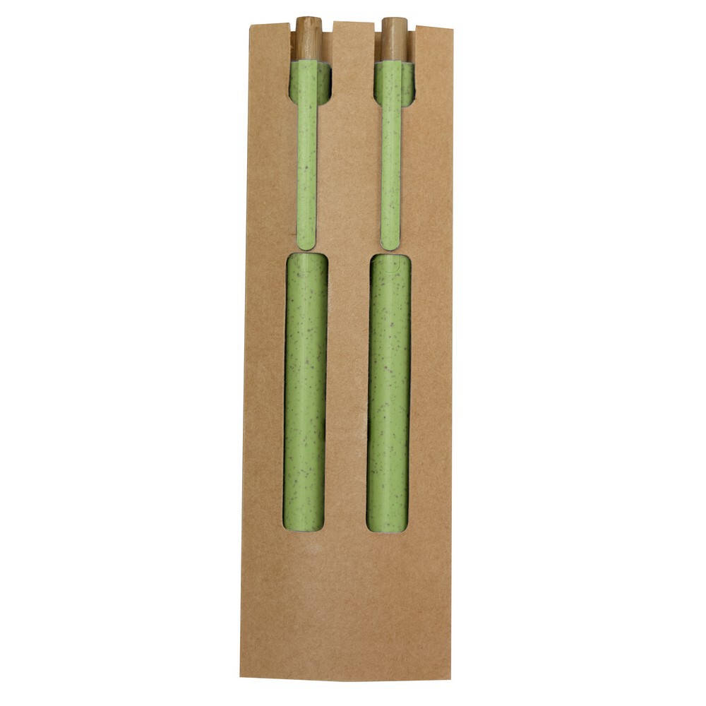 Zestaw piśmienniczy ze słomy pszenicznej, długopis i "wieczny" ołówek / Zielony