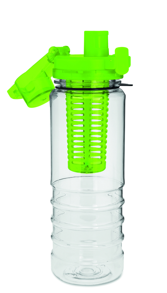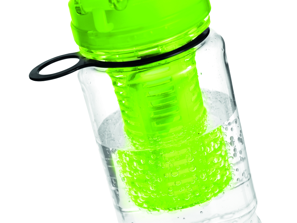 Bidon wykonany z TRITANU (nie zawiera BPA) z pojemnikiem na owoce lub mięte. Automatyczne otwieranie.