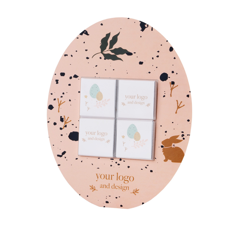Wielkanoc to doskonała okazja, by podkreślić swoją markę w elegancki i smakowity sposób. Zestaw Czekoladek Kwadratowych w Kopercie Kształtowej – Jajko to cztery Mini Tabliczki czekolady po 5 g, wykonane z surowców pochodzących ze zrównoważonych upraw certyfikowanych przez Cocoa Horizons. To doskonały wybór dla firm, które cenią jakość, smak oraz odpowiedzialne podejście do produkcji. Oferujemy 3 wersje smakowe: czekolada biała, mleczna lub deserowa.