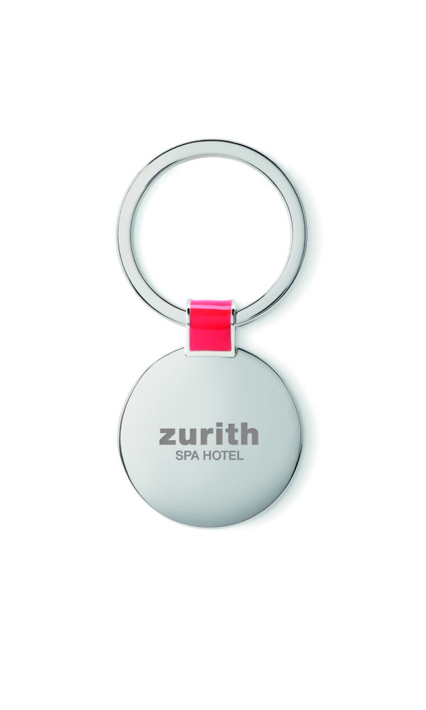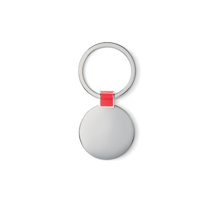 Okrągły brelok na klucze, błyszcząca niklowana powłoka.