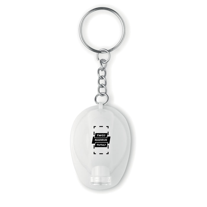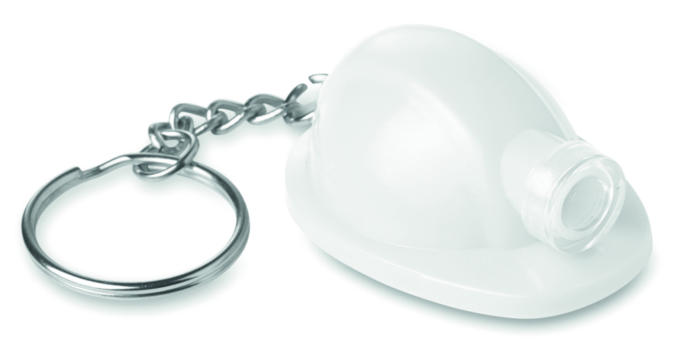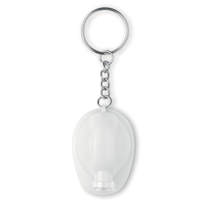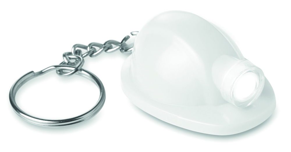 Brelok w kształcie kasku. Z latarką 1 LED, działa po naciśnięciu i przytrzymaniu przycisku. 3 baterie AG10 w komplecie.