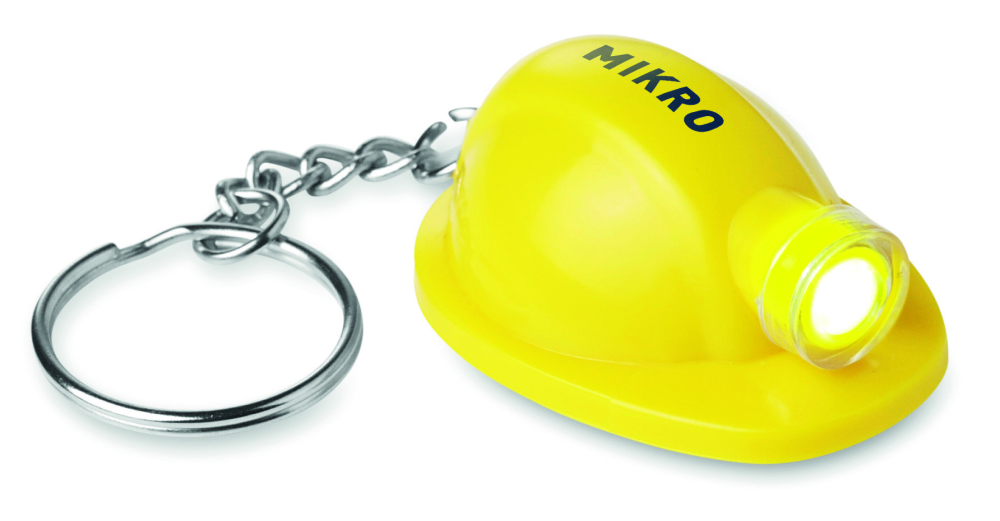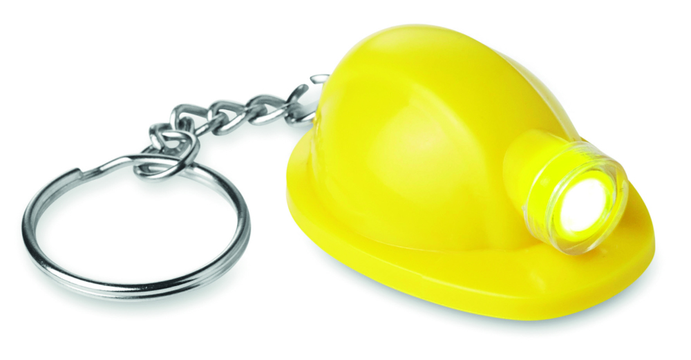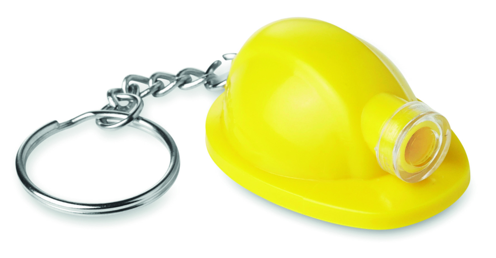 Brelok w kształcie kasku. Z latarką 1 LED, działa po naciśnięciu i przytrzymaniu przycisku. 3 baterie AG10 w komplecie.