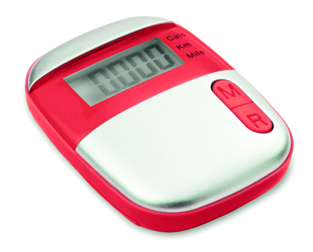 Krokomierz z klipsem w obudowie z ABS. Mierzy kroki, dystans (mile lub kilometry) i kalorie. 1 bateria guzik w komplecie.