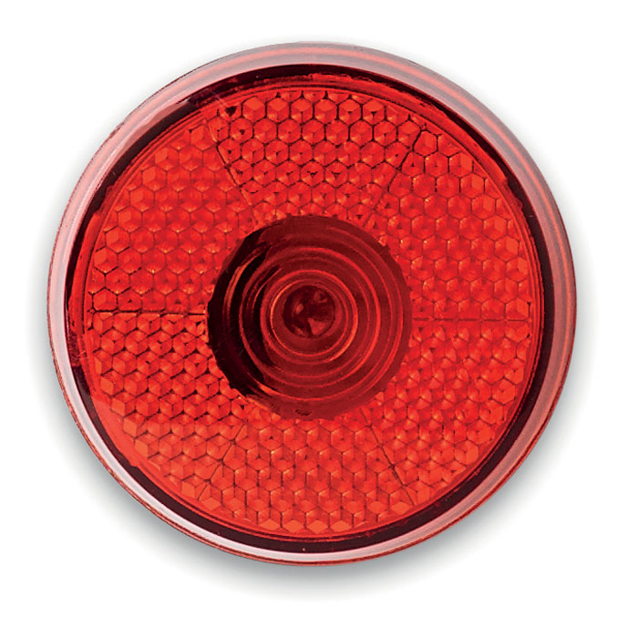 Okrągła lampka LED z migającym czerwonym światłem. Z klipsem. Bateria AG13 w komplecie.