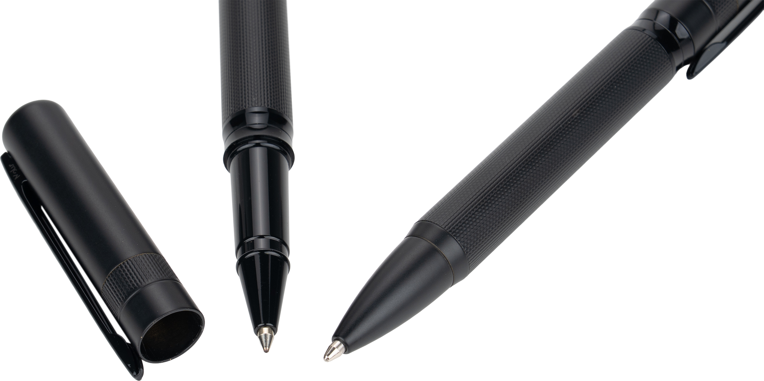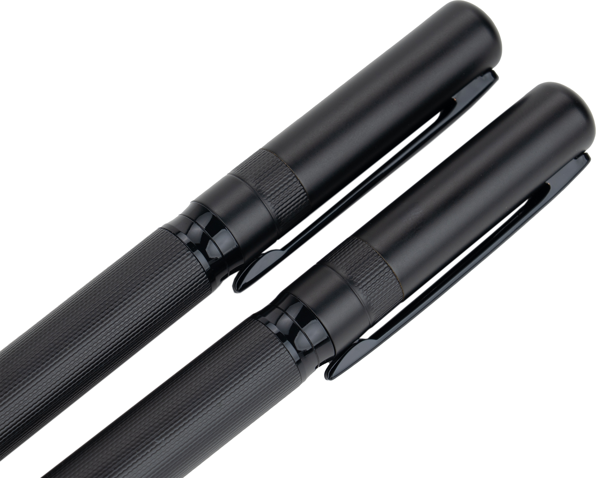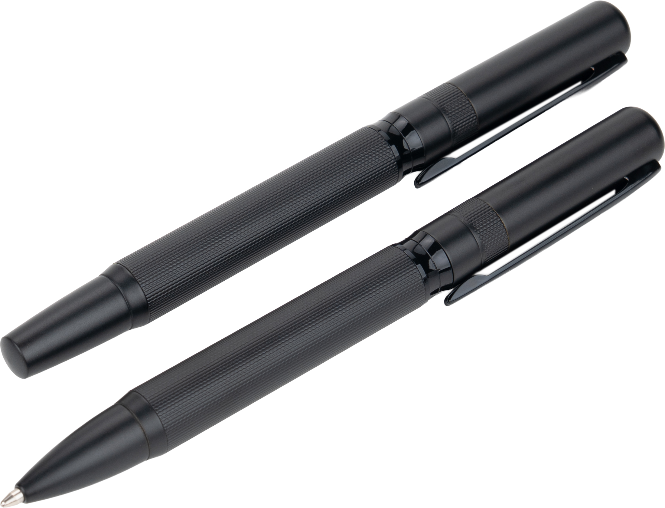 Zestaw piśmienny długopis i pióro kulkowe SANTA ROSA to elegancki dodatek dla osób ceniących jakość i styl. Wysokiej jakości zestaw do pisania składający się z pióra kulkowego i przekręcanego długopisu o eleganckim wyglądzie. Ozdobne logo MoLu zostało wydrukowane w kolorze matowej czerni na czarnym pierścieniu. Precyzyjnie wykonane elementy zestawu zapewniają niezwykły komfort pisania i płynne prowadzenie po papierze. Ergonomiczny kształt doskonale dopasowuje się do dłoni, redukując zmęczenie nawet podczas długotrwałego użytkowania. Wysokiej jakości materiały gwarantują trwałość i odporność na codzienne użytkowanie. Eleganckie wykończenie sprawia, że zestaw prezentuje się niezwykle stylowo, stanowiąc doskonały dodatek do biurka każdego profesjonalisty. Idealny jako prezent biznesowy lub wyraz uznania dla współpracowników. Zestaw dostarczany jest w eleganckim opakowaniu, podkreślającym jego ekskluzywny charakter. Produkt objęty jest 2-letnią gwarancją, co świadczy o jego niezawodnej jakości.