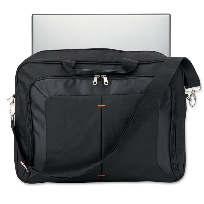 Torba na laptop z poliestru 600D/420D. Główna komora na laptop 17 cali i kieszeń na suwak z przodu. W komplecie odpinany i regulowany pasek na ramię.