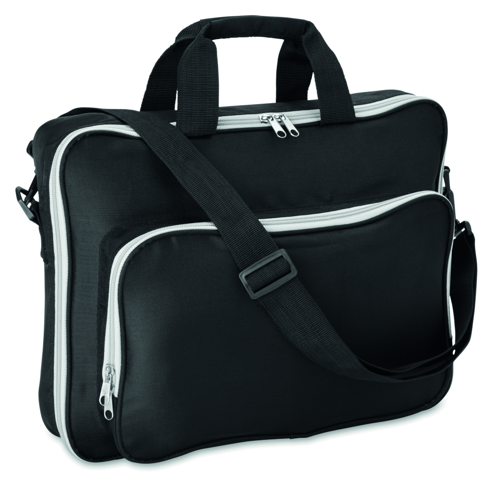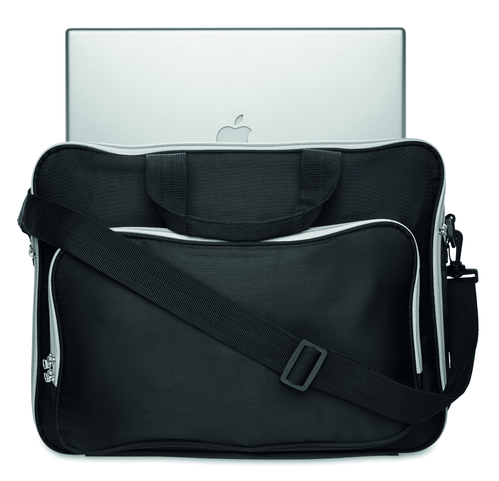 Torba na laptop 15 cali. 1 komora główna i z przodu kieszeń na suwak. W komplecie: odpinany i regulowany pasek na ramię. Materiał: Poliestr 450D.