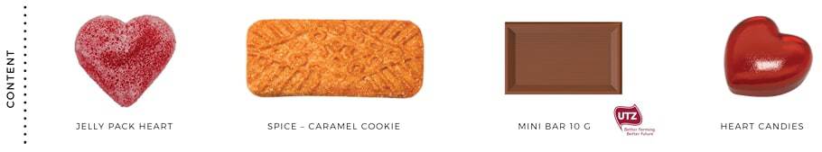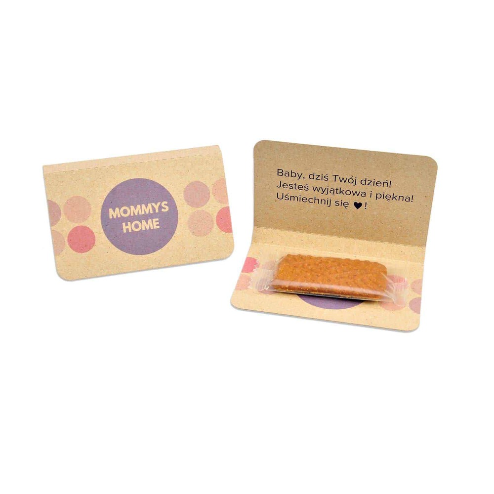 Do naszych standardowych zawartości dodaliśmy też trzy nowości: mini czekoladki w kształcie serca, gwiazdki i kwiatka. Każda z nich zapakowana jest w 1 z 3 standardowych kolorów folii, ale istnieje również możliwość dostosowania jej do projektu, w tym zadruk Twoim logotypem! Karnet wykonany został z papieru certyfikowanego FSC.