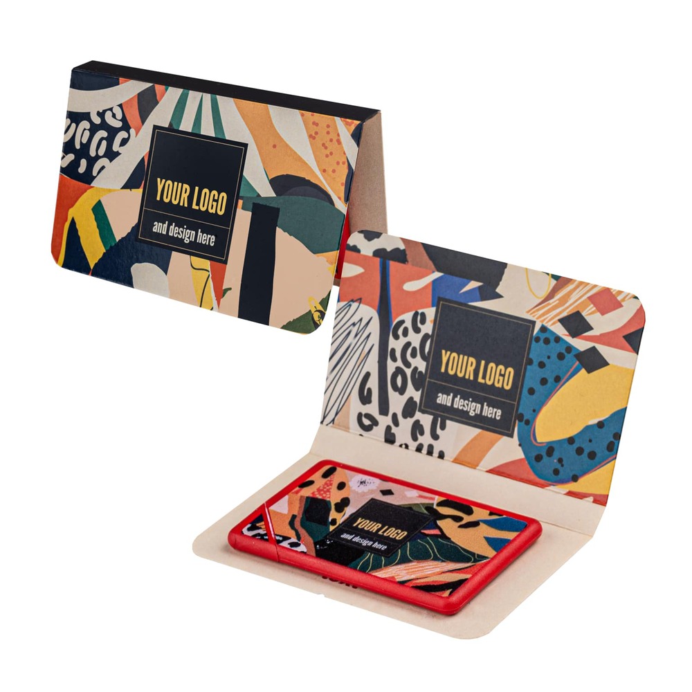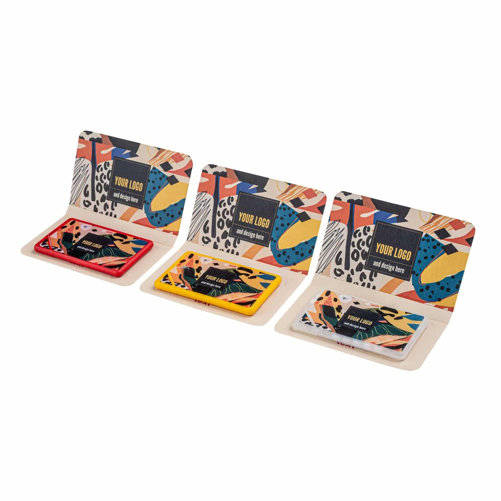 Miętówki bez dodatku cukru pakujemy w poręczne pudełeczko w kształcie karty kredytowej, które z łatwością schowasz do portfela. Karty nadają się w 100% do recyclingu. W ofercie znajdziesz 7 opcji kolorystycznych, w tym kolory pełne i transparentne. W tym produkcie zaskoczy Cię podwójna personalizacja dwustronnym nadrukiem na karnecie oraz cyfrowym nadrukiem UV na karcie.