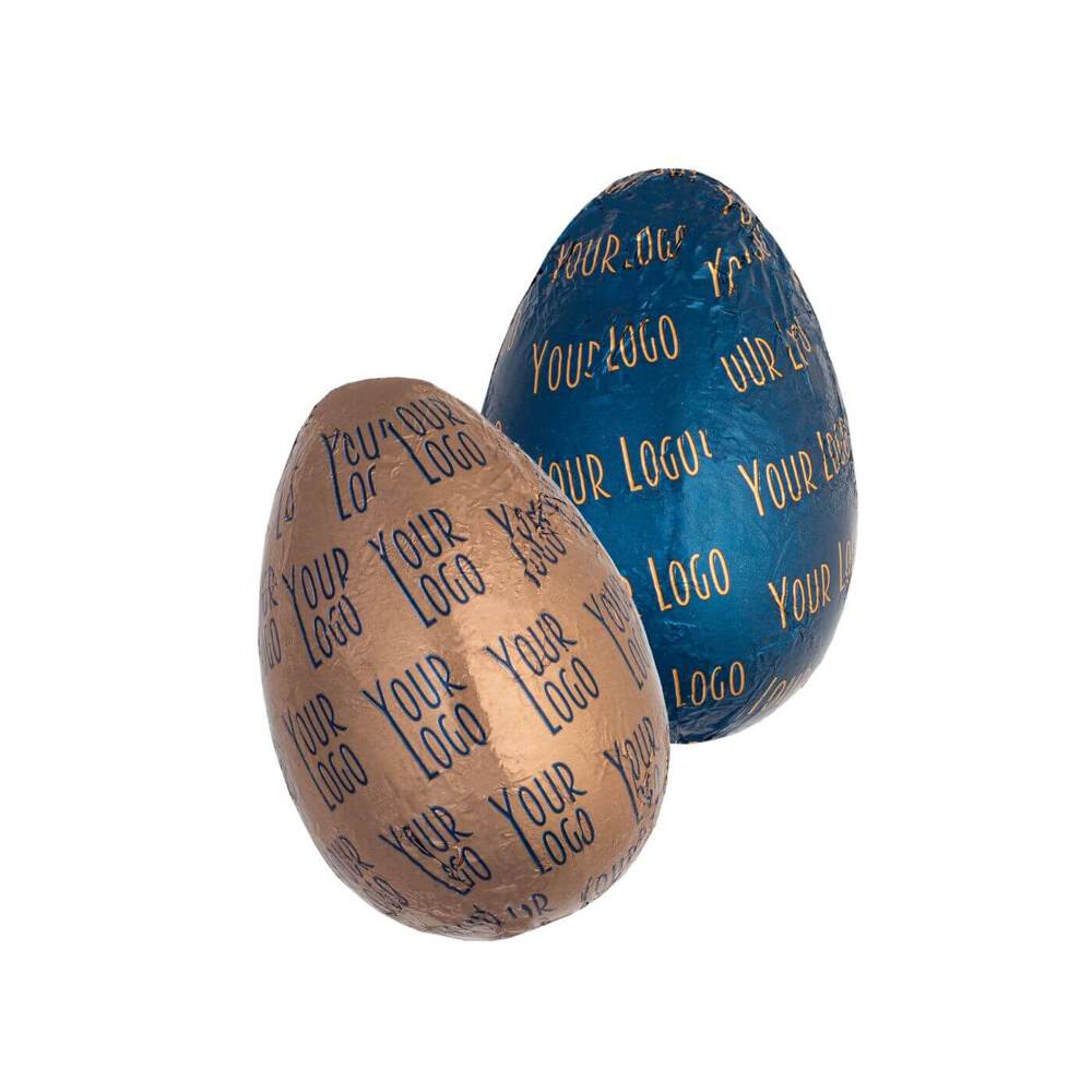 Każde jajo zapakowane jest w folię, zdobioną nadrukiem w postaci powtarzalnego wzoru. Na Twoje życzenie wyeksponujemy na opakowaniu logo marki.
