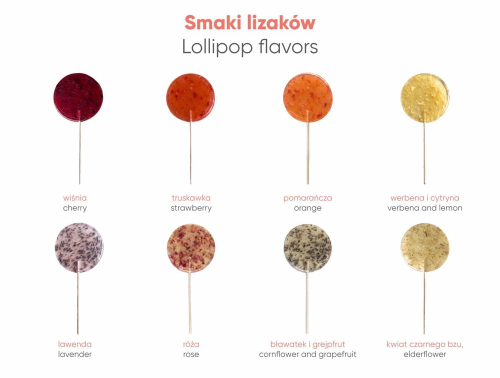 Polecamy też soczyście owocowy wariant – lizaki z dodatkiem soków owocowych. Dostępne są w 4 wersjach smakowych: jabłko, truskawka, pomarańcza i cytryna. Ich kolor i smak to zasługa naturalnych soków owocowych.