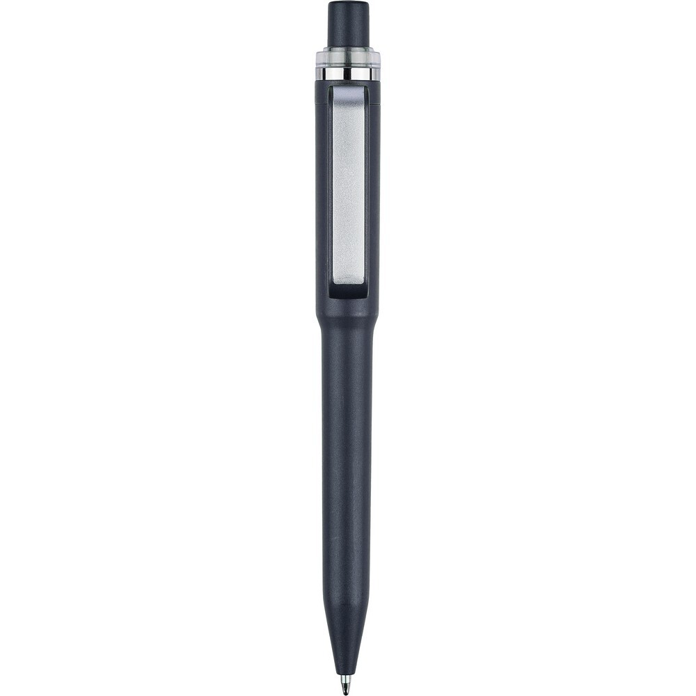 Długopis RABS, w kształcie kubka podróżnego, z metalicznym wykończeniem, wkład w niebieskim kolorze o długości pisania 800 metrów, mechanizm przyciskowy, ikona ABS z recyklingu, plastikowy przycisk, klips oraz chromowany plastikowy pierścień na górze