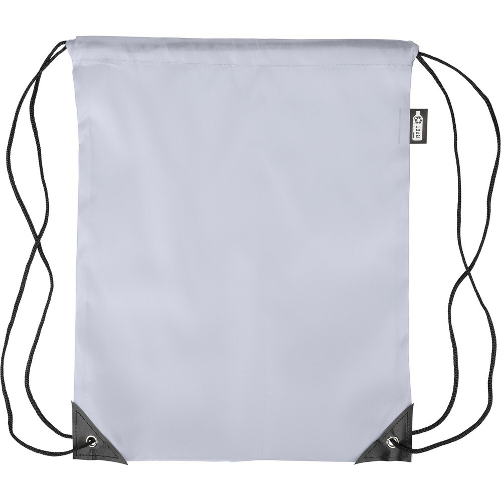 Worek ze sznurkiem, czarny nylonowy sznurek po obu stronach, zamknięcie na ściągacz, wewnętrzna kieszeń, pojemność: 5L, maksymalne obciążenie: 7 kg, ikona RPET na metce, produkt wykonany z poliestru RPET 210D z dwoma czarnymi narożnikami z PU z przodu i wewnętrznymi szwami
