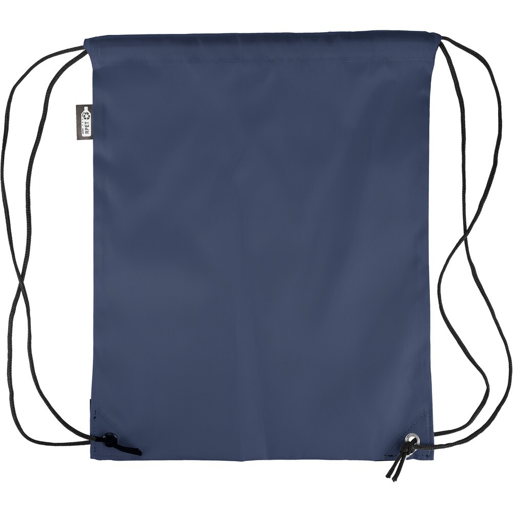 Worek ze sznurkiem, czarny nylonowy sznurek po obu stronach, zamknięcie na ściągacz, wewnętrzna kieszeń, pojemność: 5L, maksymalne obciążenie: 7 kg, ikona RPET na metce, produkt wykonany z poliestru RPET 210D z dwoma czarnymi narożnikami z PU z przodu i wewnętrznymi szwami