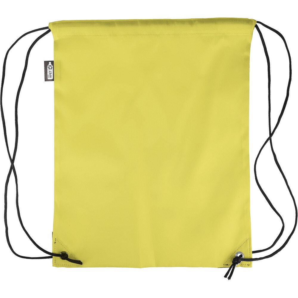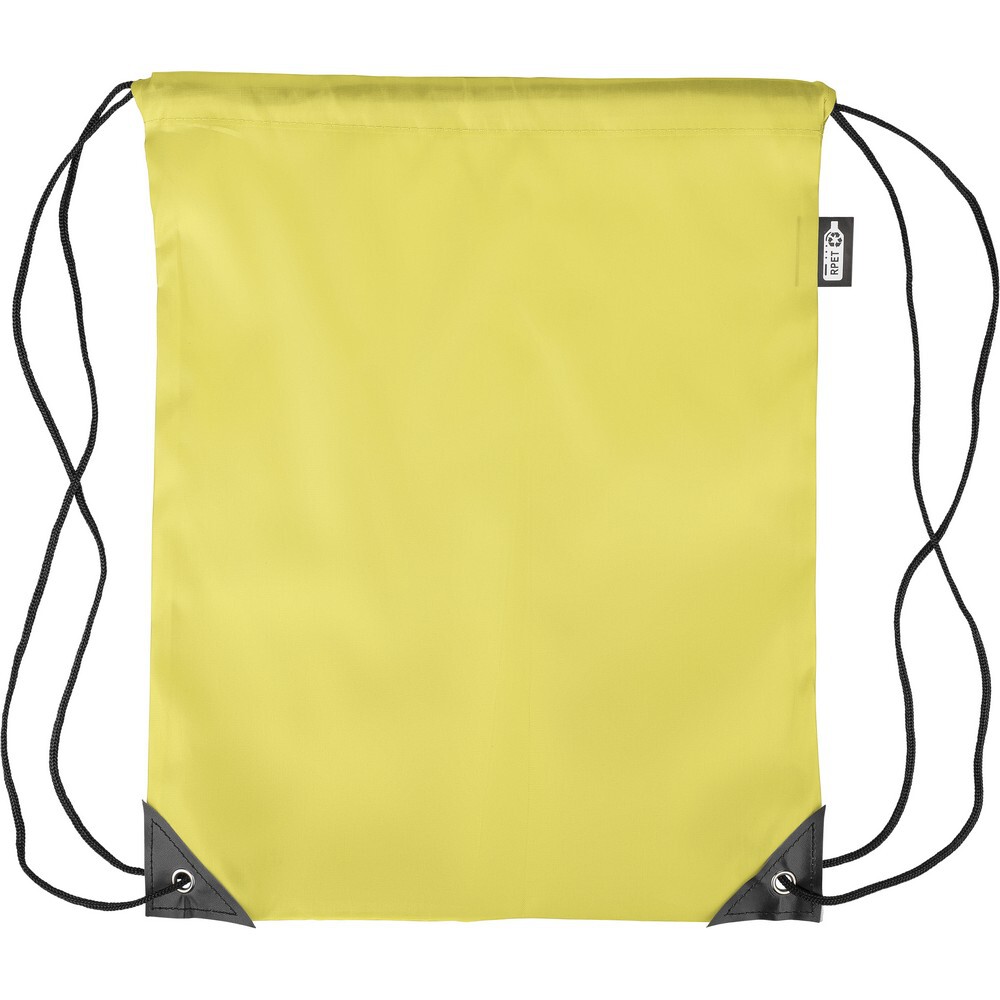 Worek ze sznurkiem, czarny nylonowy sznurek po obu stronach, zamknięcie na ściągacz, wewnętrzna kieszeń, pojemność: 5L, maksymalne obciążenie: 7 kg, ikona RPET na metce, produkt wykonany z poliestru RPET 210D z dwoma czarnymi narożnikami z PU z przodu i wewnętrznymi szwami