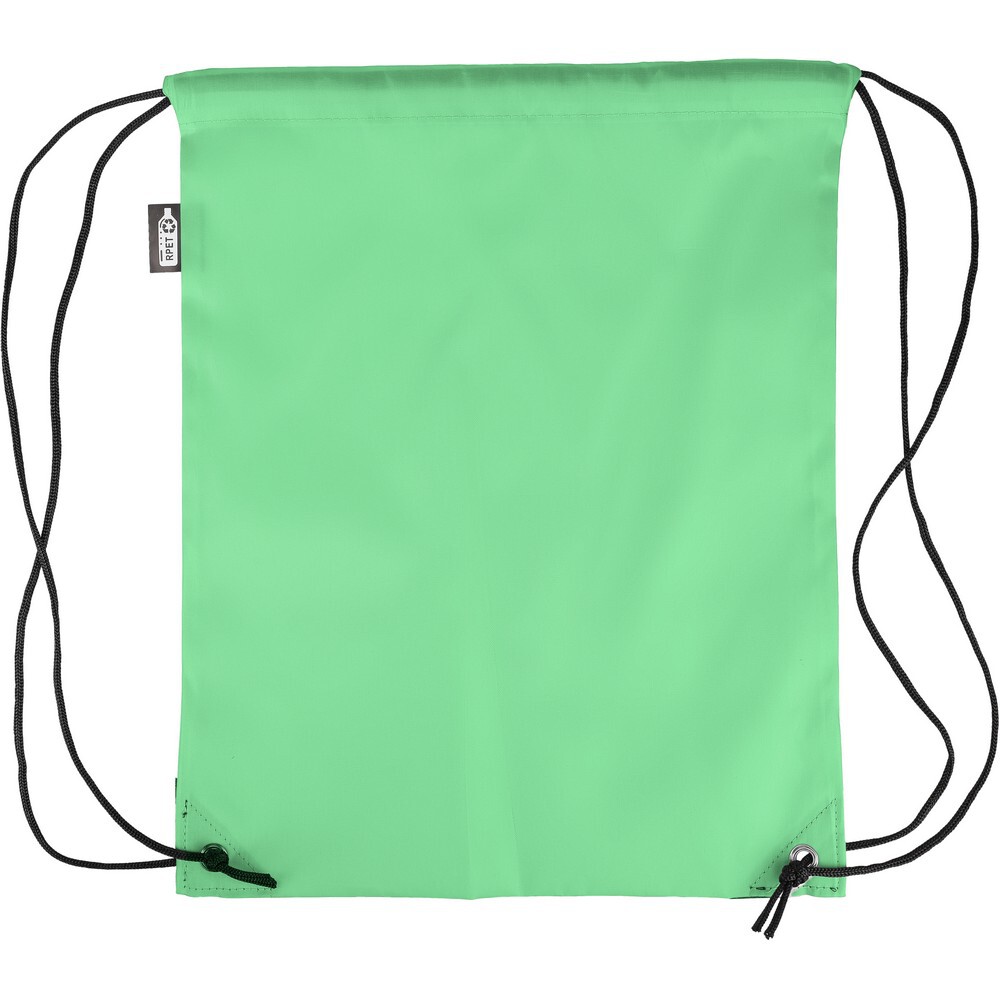 Worek ze sznurkiem, czarny nylonowy sznurek po obu stronach, zamknięcie na ściągacz, wewnętrzna kieszeń, pojemność: 5L, maksymalne obciążenie: 7 kg, ikona RPET na metce, produkt wykonany z poliestru RPET 210D z dwoma czarnymi narożnikami z PU z przodu i wewnętrznymi szwami