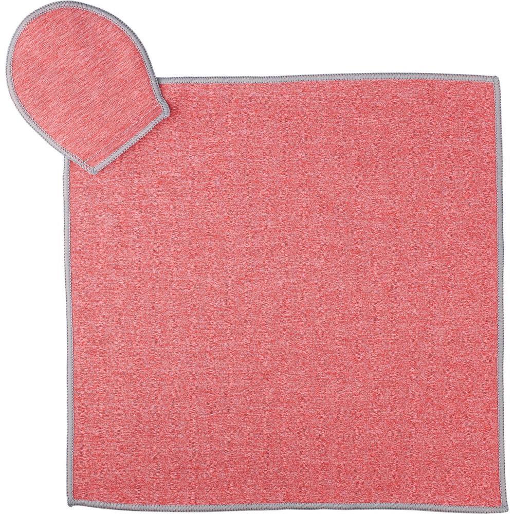 Ręcznik golfowy, z wbudowaną kieszonką na piłkę golfową, wyposażony w metalowy haczyk umożliwiający łatwe przymocowanie do torby, wewnątrz znajduje się ikona RPET na metce, można prać w pralce (na zimno), produkt wykonany z RPET