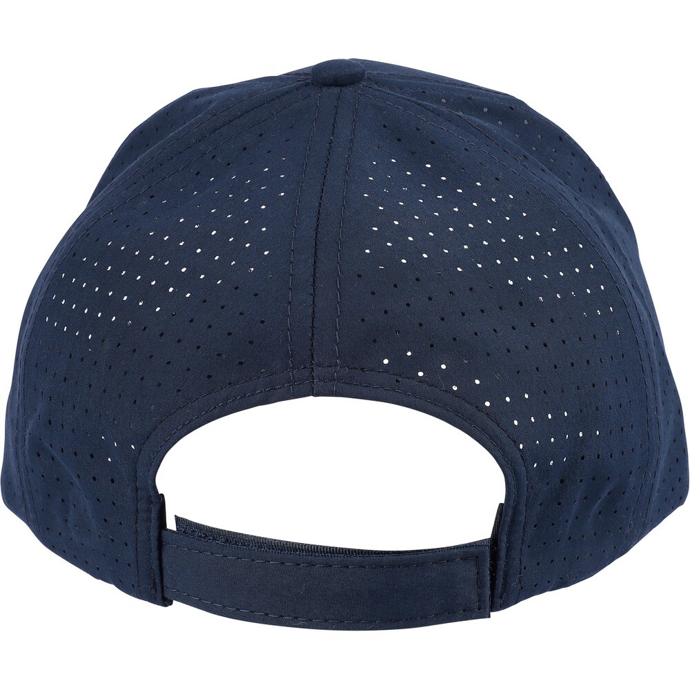 Czapka z daszkiem z laserowo wyciętymi otworami wentylacyjnymi na tylnych panelach, posiada 7-panelową konstrukcję z jednym panelem z przodu oraz daszek o długości 7 cm, regulowana i oddychająca, bez etykiety PU, produkt wykonany z poliestru