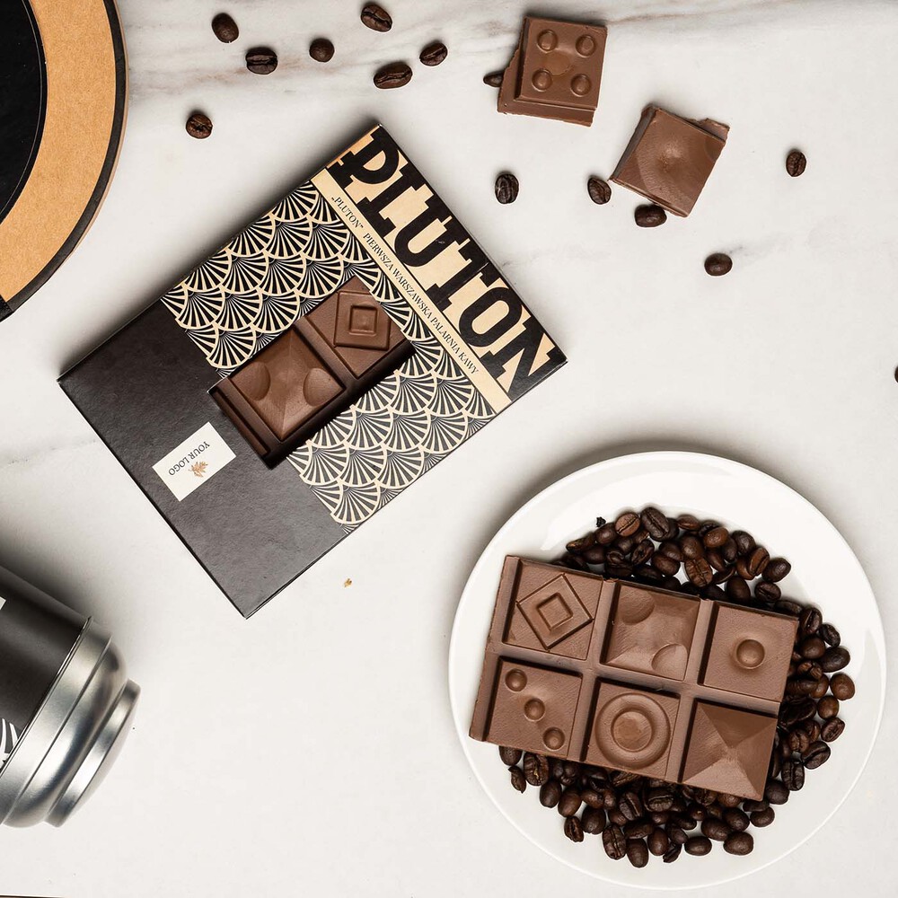 Czekolada mleczna z nadzieniem kawowym z dodatkiem kawy Pluton – fuzja smaków, idealny produkt, gdy chcesz podziękować za udział w spotkaniu.