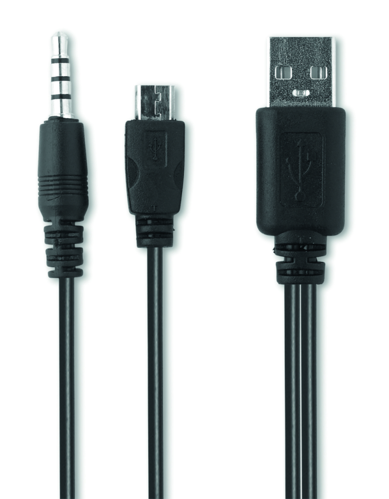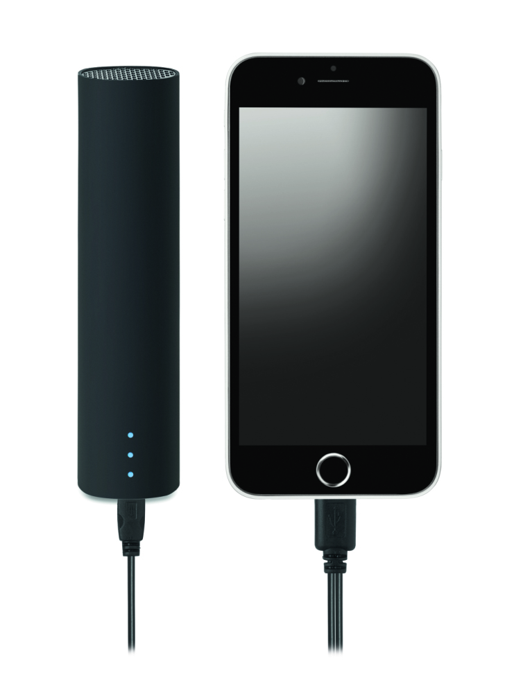 Urządzenie 2w1: Power bank 3500 mAh i głośnik z gumowym wykończeniem. W zestawie kabel USB z końcówką micro USB. Funkcja podstawki nie jest już dostępna. Dane prądu wyjściowego: DC5V/1A.